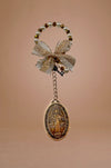 El Medallón de Bendición de San Benito con perlas es una bendición para el hogar y un colgante diseñado para traer prosperidad y protección. Cuenta con un círculo de elegantes perlas como colgante y un lazo the oro y transparente que se adapta a cualquier lugar o ocasión para regalar. Este medallón honra a San Benito, aportando un toque espiritual que realza la atmósfera de fe y gracia en su hogar. Ideal para regalar o uso personal, combina tradición con una estética refinada para enriquecer su espacio con bendiciones. Hecho a mano.